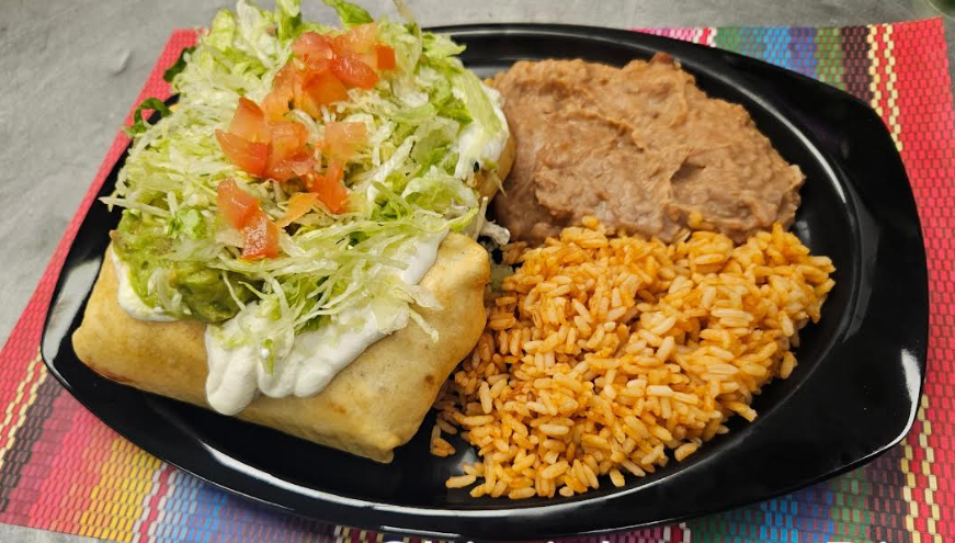Two large flour tortillas filled and deep-fried to a golden crisp, stuffed with melted cheese and your choice of seasoned ground beef, tender chicken or hearty chunky beef. Topped with guacamole, sour cream, fresh lettuce, and diced tomatoes. Served with refried beans and a side of Manuel’s signature rice for a hearty and flavorful meal.