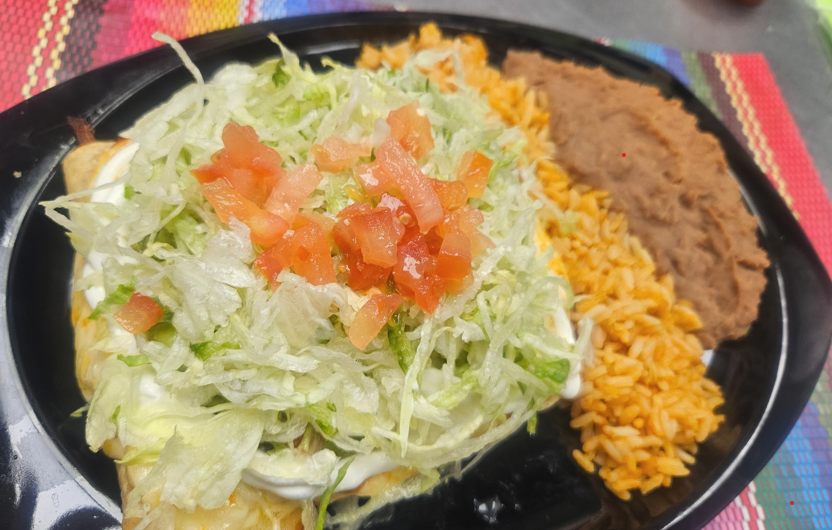 Includes three crispy flautas made with your choice of tender chicken or seasoned ground beef, rolled in corn tortillas and deep-fried to golden perfection. Topped with melted cheese, fresh lettuce, diced tomatoes, guacamole, and sour cream. Served with refried beans and a side of Manuel’s signature rice for a hearty and flavorful meal.